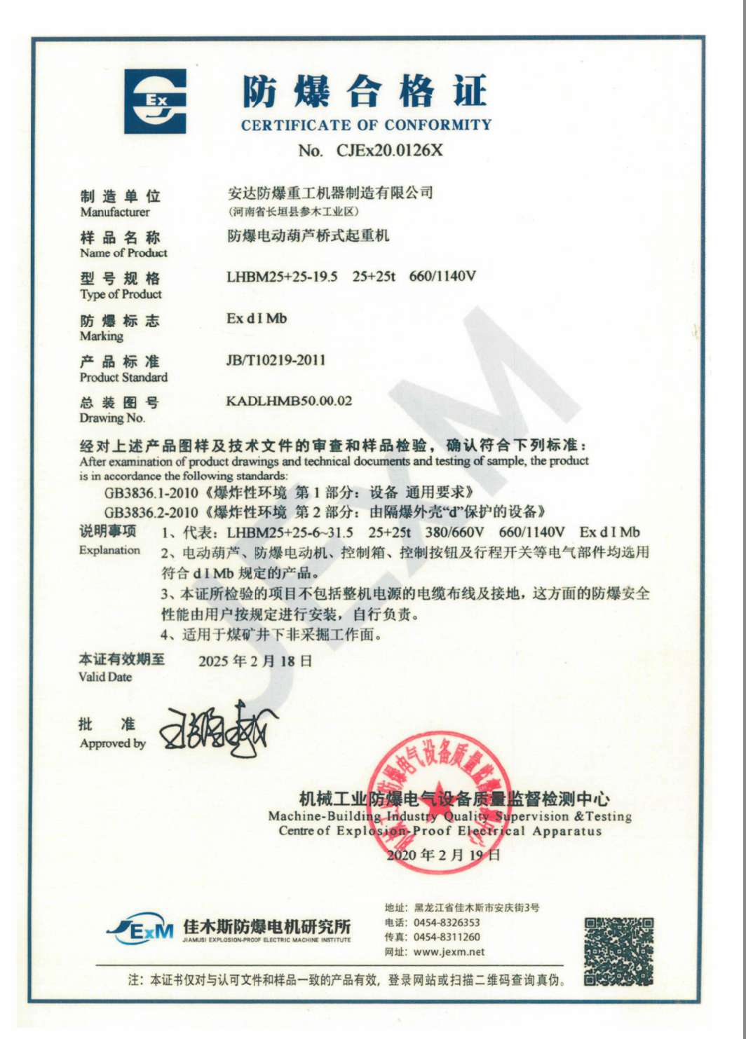» 防爆電動葫蘆橋式起重機 防爆合格證