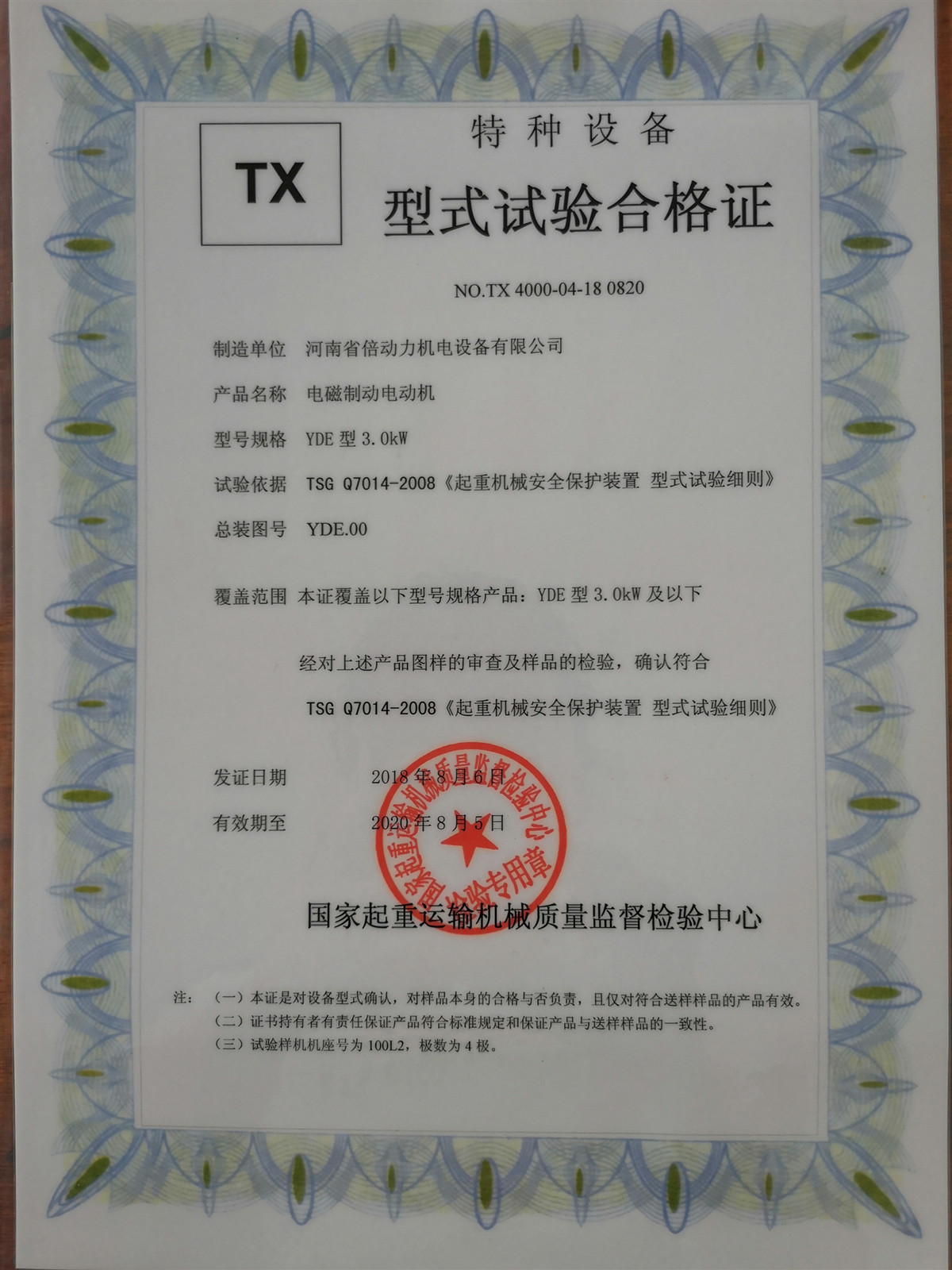 本證覆蓋以下型號規格產品 YDE3.0KW 及以下