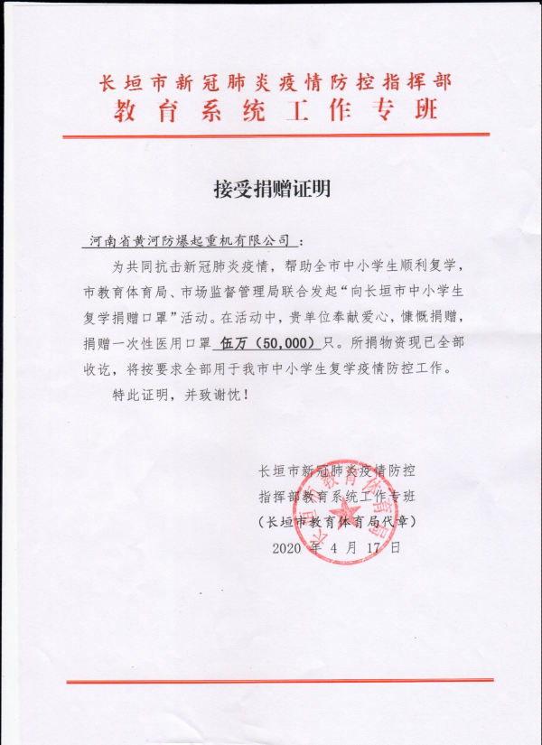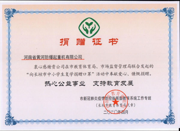 疫情無情,人間有愛。在長垣市校園疫情防控和復(fù)學(xué)工作中,河南省黃河防爆起重機(jī)有限公司及時伸出援手、奉獻(xiàn)愛心,用“愛心口罩”助力學(xué)生復(fù)學(xué)、護(hù)佑學(xué)生安全,以實際行動支持校園疫情防控和教育事業(yè)發(fā)展。河南省黃河防爆起重機(jī)有限公司以及其他公司善行義舉不僅感人至深,也必將在廣大學(xué)生的心中播下愛的種子。