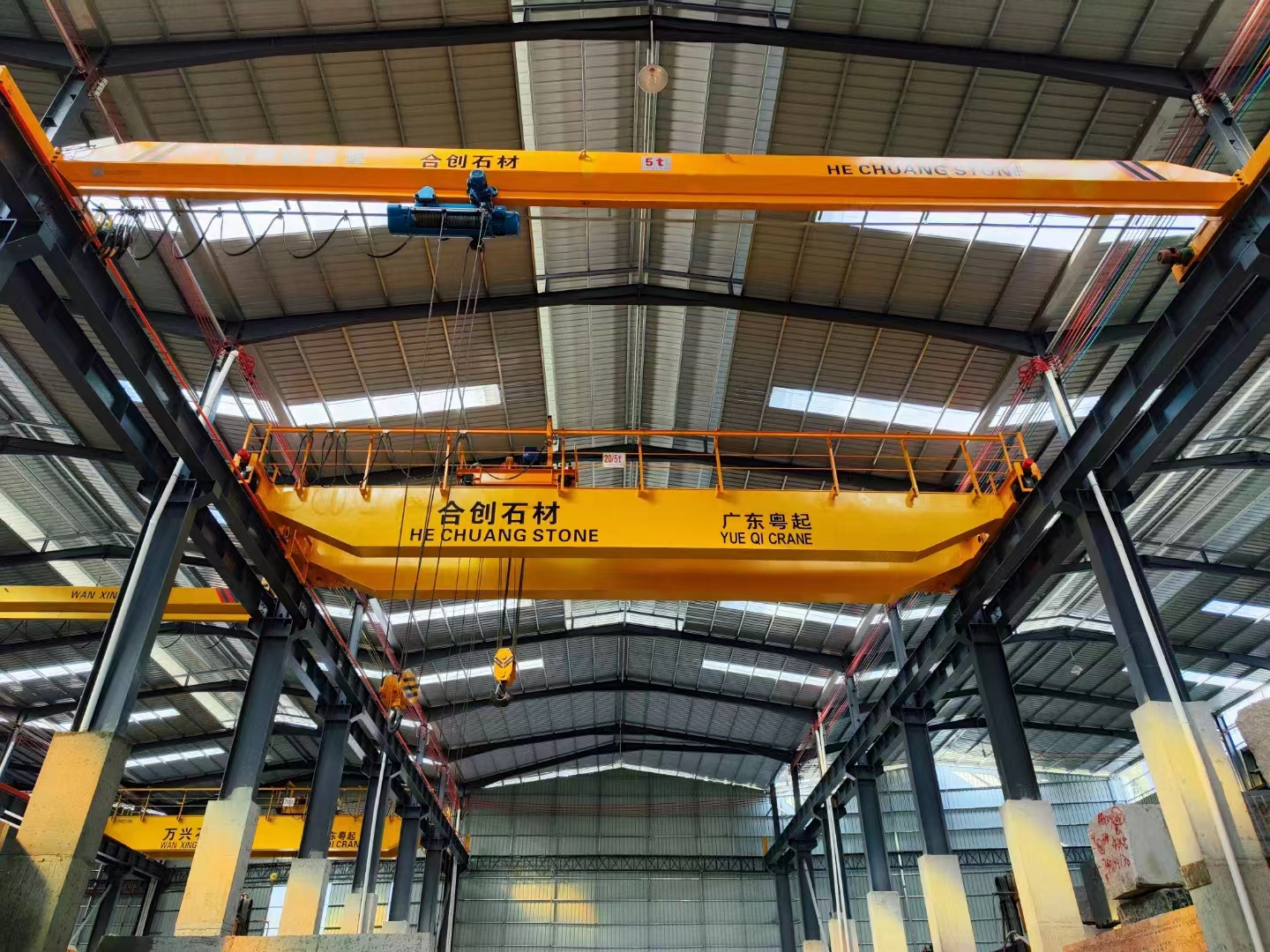 橋式起重機(jī)是橫架于車間、倉(cāng)庫(kù)和料場(chǎng)上空進(jìn)行物料吊運(yùn)的起重設(shè)備。由于它的兩端坐落在高大的水泥柱或者金屬支架上,形狀似橋。橋式起重機(jī)的橋架沿鋪設(shè)在兩側(cè)高架上的軌道縱向運(yùn)行,可以充分利用橋架下面的空間吊運(yùn)物料,不受地面設(shè)備的阻礙。它是使用范圍**廣、數(shù)量**多的一種起重機(jī)械。