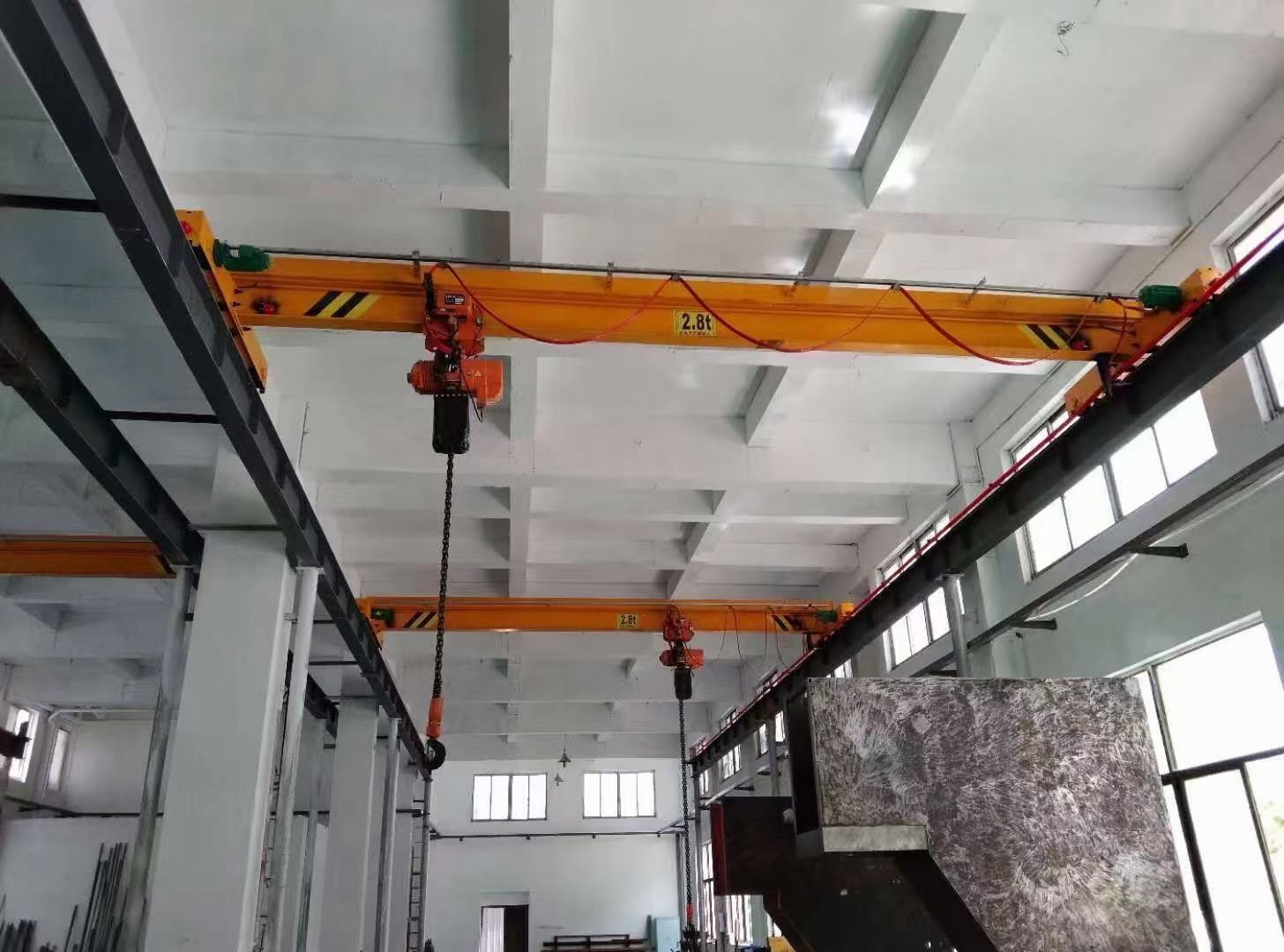 本公司主要生產(chǎn)產(chǎn)品有:(1)起重機(jī)類(lèi): 天車(chē)/天吊/行吊/行車(chē)、單梁起重機(jī)、雙梁起重機(jī)、電動(dòng)葫蘆雙梁起重機(jī)、 門(mén)式起重機(jī) 、半門(mén)式起重機(jī)、懸臂起重機(jī)、壁栓式懸臂起重機(jī)、旋臂起重機(jī)、LX懸掛起重機(jī)、LH葫蘆雙梁起重機(jī)、花架門(mén)式起重機(jī)、雙梁抓斗起重機(jī)、QD吊鉤橋式起重機(jī)、QD冶金鑄造起重機(jī)、QE雙小車(chē)吊鉤橋式起重機(jī)、MH單主梁葫蘆門(mén)式起重機(jī)、MG雙橋吊鉤門(mén)式起重機(jī)、L單主梁門(mén)式起重機(jī)、升降平臺(tái)、電磁吸盤(pán)、電動(dòng)平車(chē)、導(dǎo)軌貨梯類(lèi)非標(biāo)起重機(jī)的制造、改造、安裝、維修、保養(yǎng)等。 二、配套件類(lèi):各類(lèi)國(guó)產(chǎn)進(jìn)口電動(dòng)(手動(dòng))葫蘆、防爆電動(dòng)葫蘆、冶金電動(dòng)葫蘆.雙制動(dòng)電動(dòng)葫蘆、雙速電動(dòng)葫蘆、環(huán)鏈電動(dòng)葫蘆、微型電動(dòng)葫蘆、手拉葫蘆、單軌小車(chē)、電磁(永磁)吸盤(pán)、電纜卷筒、電動(dòng)小車(chē)、電控柜、卷?yè)P(yáng)機(jī)、空壓機(jī)、電動(dòng)機(jī)、減速機(jī)、液壓制動(dòng)器、聯(lián)軸器、變頻器、控制器、遙控器、保護(hù)器、電阻器、緩沖器、安全滑線、電線電纜、抓斗抓具、吊具索具夾具、吊帶、吊鉤、起重鏈條.車(chē)輪組、公司有專(zhuān)業(yè)維修人員為客戶;維修,安裝,調(diào)試,檢修保養(yǎng)等業(yè)務(wù)。