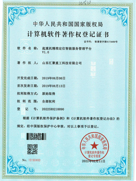 起重機**定位智能服務管理平臺 V1.0(自動化證書)