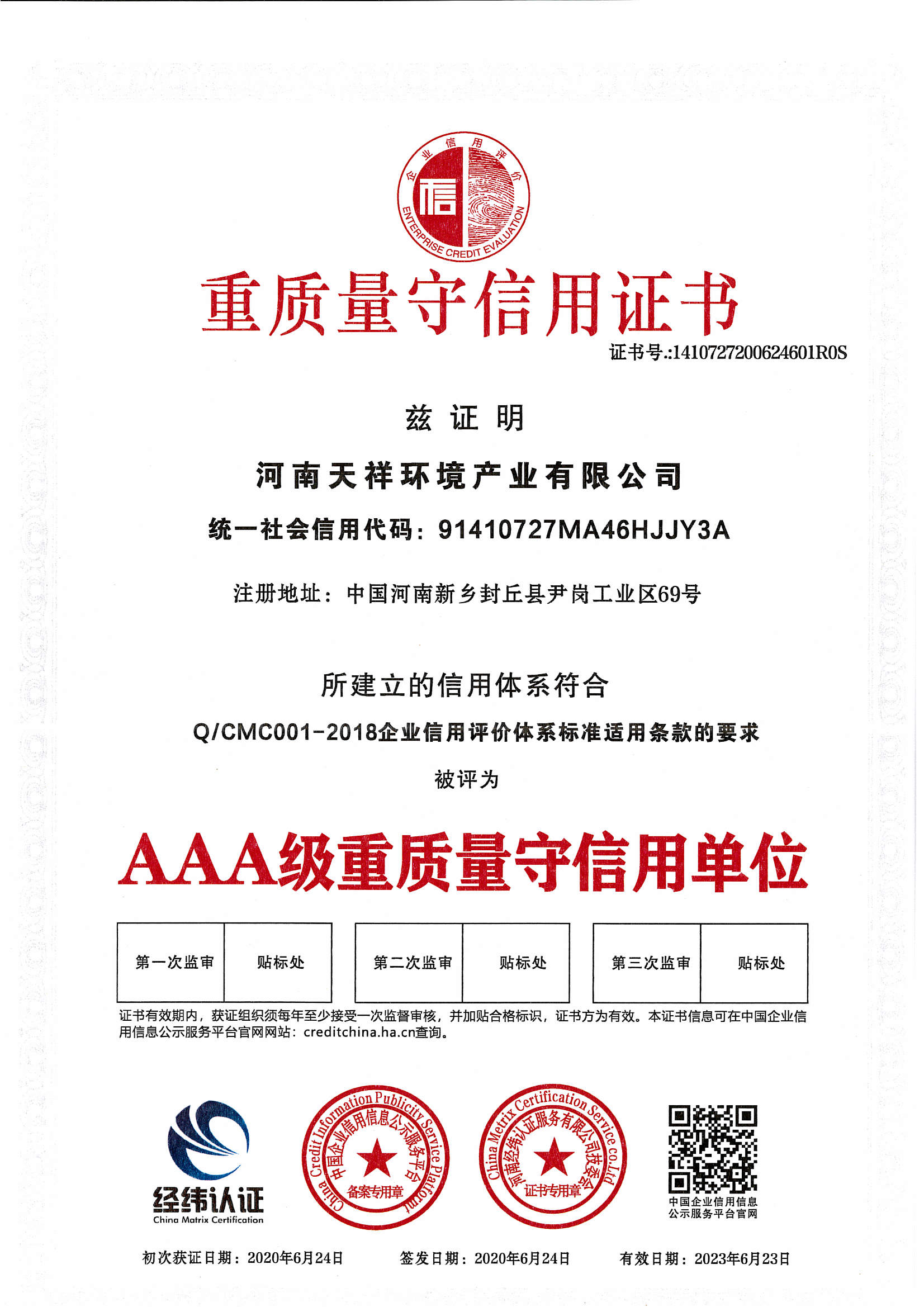 » 重質量授信用證書