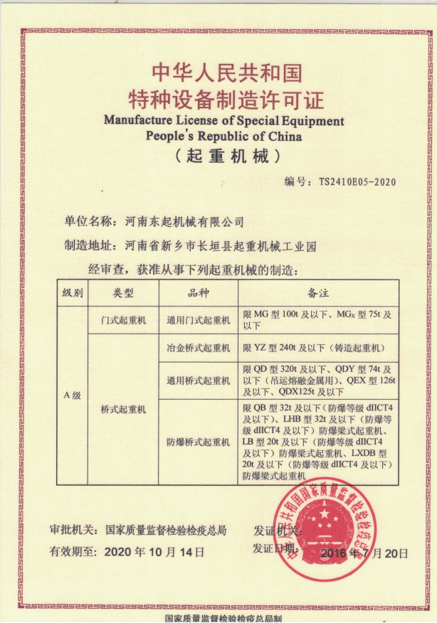 » 中華人民共和國特種設備制造許可證