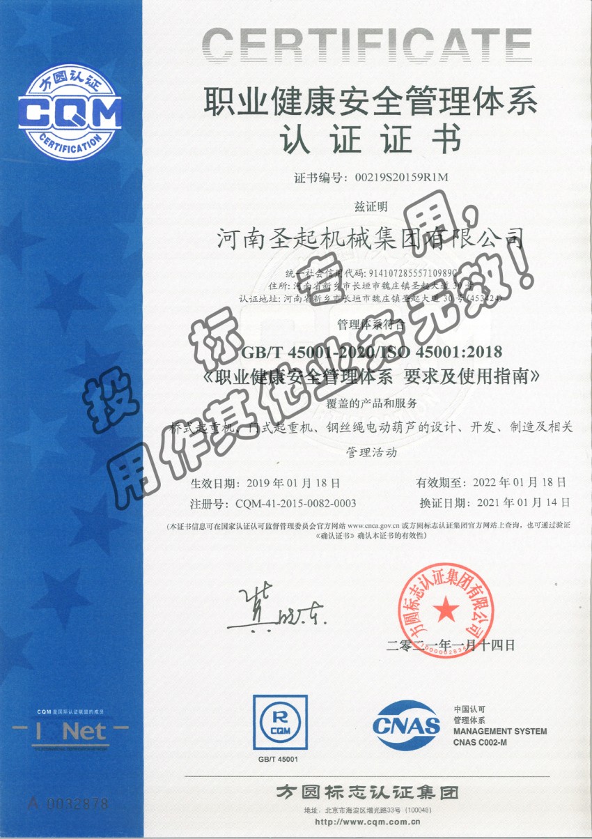 » 職業健康安全管理體系認證證書
