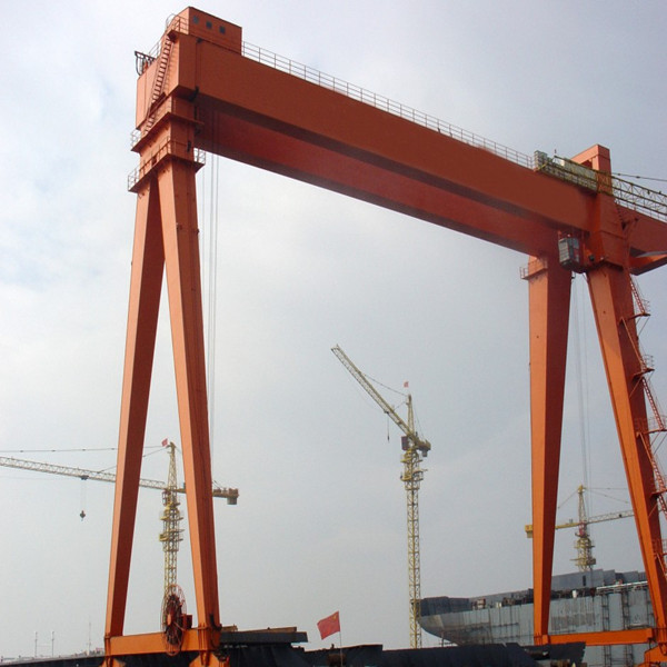它的金屬結構像門形框架,承載主梁下安裝兩條支腳,可以直接在地面的軌道上行走,主梁兩端可以具有外伸懸臂梁。