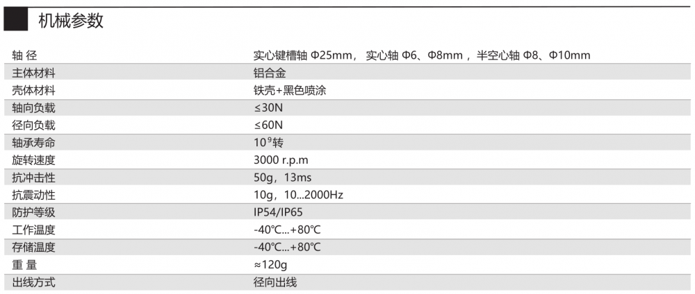 軸徑 實心鍵槽軸 Φ25 mm,實心軸 Φ6、Φ8mm