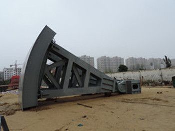 大型弧門閘門主橫梁采用比較多的方式是露頂式或寬高都比較大的弧形閘門;該產品支臂可分為直支臂和斜支臂兩種,每側的支臂一般是由兩根承壓構件組成,如果高度比較大,每側也可以用三根承壓構件。