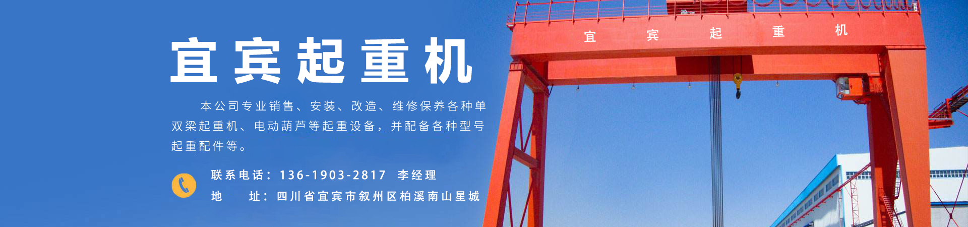 主營范圍:宜賓單梁起重機、宜賓門式起重機、宜賓龍門起重機、宜賓港口起重