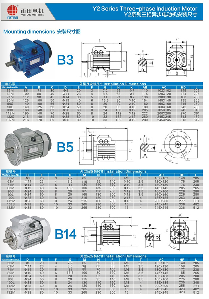 鋁殼三相異步電機參數及規格尺寸