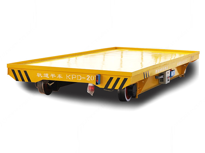電動平車,又稱電動平板車、電平車、臺車、過跨車、電動軌道車、地爬車等,是一種廠內有軌電動運輸車輛,首先它是一種軌道型運輸車輛,需要在地面上鋪設軌道,軌道一般為工字型面接觸道軌;其次它是電驅動車輛,在電機減速機驅動下自動運行,再次它是一種平板車,臺面平整無廂蓋,特殊情況下也可以是非平面但無廂蓋,車體無方向盤只有前進后退方向(即使轉彎也城靠軌道轉彎)。此種車輛具有結構簡單、使用方便、承載能力大、不怕臟不怕砸、維護容易、使用壽命長等特點,因其方便、壯實、經濟、實用、易清理等諸多優點,成為企業廠房內部及廠房與廠房之間短距離定點頻繁運載重物的首選運輸工具。
