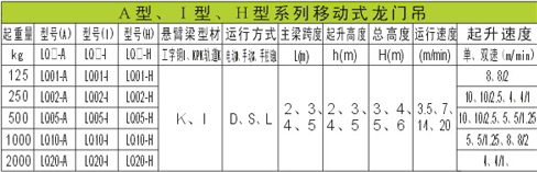 A型、I型、H型系列移動式龍門吊技術參數