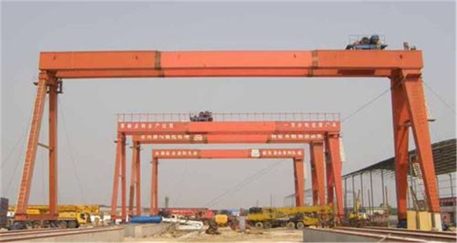 龍門起重機(jī)的起升機(jī)構(gòu)、小車運(yùn)行機(jī)構(gòu)和橋架結(jié)構(gòu),龍門起重機(jī)廠家,與橋式起重機(jī)基本相同。由于跨度大,起重機(jī)運(yùn)行機(jī)構(gòu)大多采用分別驅(qū)動(dòng)方式,龍門起重機(jī)廠家,以防止起重機(jī)產(chǎn)生歪斜運(yùn)行而增加阻力,龍門起重機(jī)廠家,甚至發(fā)生事故。龍門起重機(jī)的起重小車在橋架上運(yùn)行,有的起重小車就是一臺(tái)臂架型起重機(jī)。橋架兩側(cè)的支腿一般都是剛性支腿;跨度超過30米時(shí),常是一側(cè)為剛性支腿,而另一側(cè)通過球鉸和橋架連接的柔性支腿,使門架成為靜定系統(tǒng),這樣可以避免在外載荷作用下由于側(cè)向推力而引起附加應(yīng)力,也可補(bǔ)償橋架縱向的溫度變形龍門起重機(jī)的受風(fēng)面積大,為防止在強(qiáng)風(fēng)作用下滑行或翻倒,裝有測風(fēng)儀和與運(yùn)行機(jī)構(gòu)聯(lián)鎖的起重機(jī)夾軌器。橋架可以是兩端無懸臂的;也可以是一端有懸臂或兩端都有懸臂的,以擴(kuò)大作業(yè)范圍。半龍門起重機(jī)橋架一端有支腿,另一端無支腿,直接在高臺(tái)架上運(yùn)行。