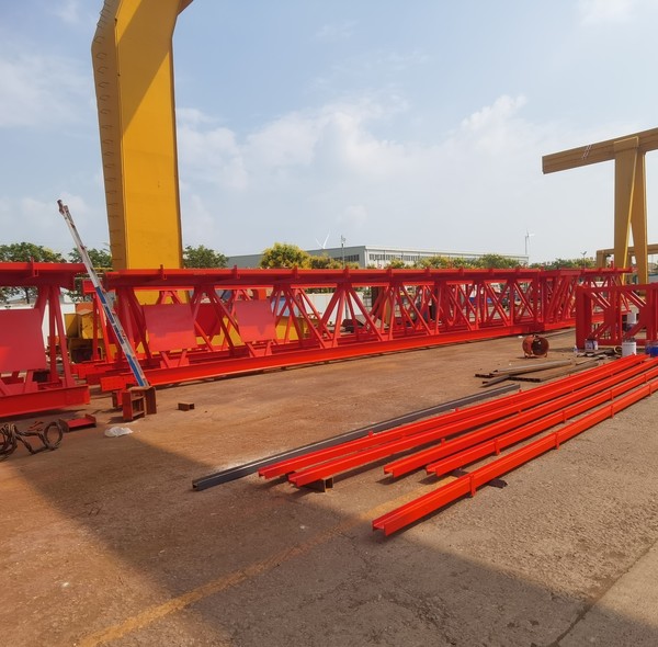 架橋機(jī)的主要結(jié)構(gòu)包括主梁、導(dǎo)梁、支腿、起吊天車(chē)、橫移機(jī)構(gòu)、縱移機(jī)構(gòu)、電氣控制系統(tǒng)等部分。其中,主梁是架橋機(jī)的主要承載結(jié)構(gòu),導(dǎo)梁則用于引導(dǎo)架橋機(jī)前進(jìn)的方向,支腿用于支撐架橋機(jī)的重量和保證穩(wěn)定性,起吊天車(chē)則用于吊裝和拼裝橋梁構(gòu)件。橫移機(jī)構(gòu)和縱移機(jī)構(gòu)則分別用于實(shí)現(xiàn)架橋機(jī)在橫向和縱向上的移動(dòng)和定位。