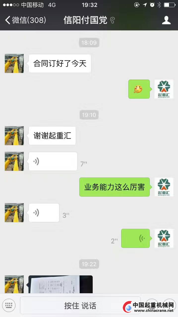 【匯.訂單】12號(hào)下午起重匯工作人員再次收到信陽(yáng)付國(guó)黨經(jīng)理的喜訊傳來(lái),今年開(kāi)春以來(lái),付經(jīng)理兵貴神速訂單連續(xù)不斷。大家深有體會(huì)一年之際在于春,起重精英們要把握機(jī)會(huì)!起重匯,與您同行!