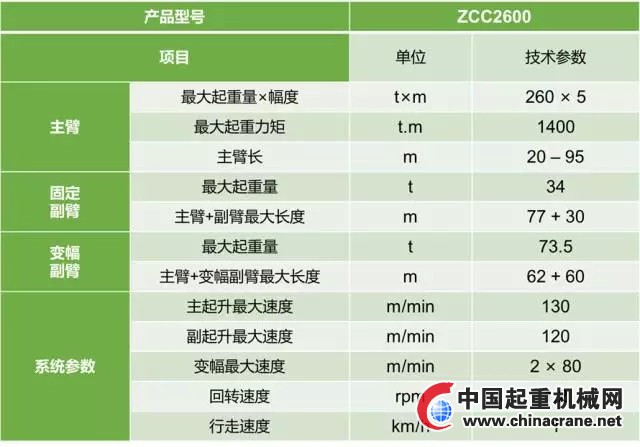 ZCC2600在自拆裝功能、安全監(jiān)控系統(tǒng)、液壓、電氣系統(tǒng)可靠性、操作室、智能化等方面進行升級,更安全、更可靠、更高效、更快捷、更方便、更舒適,成為性能卓越、外觀精美的新一代履帶式起重機。