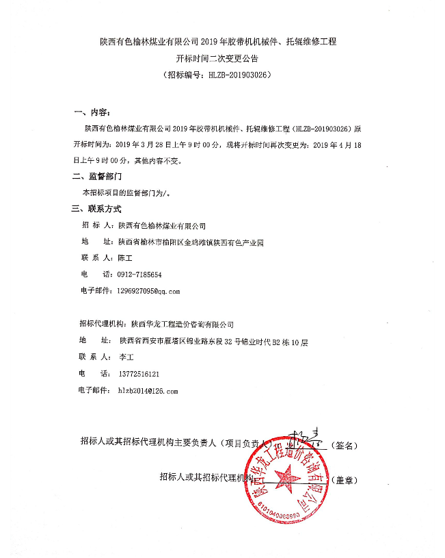 移動版:陜西有色榆林煤業(yè)有限公司起重機及電動葫蘆定期維護(hù)保養(yǎng)工程開標(biāo)時間二次變更公告