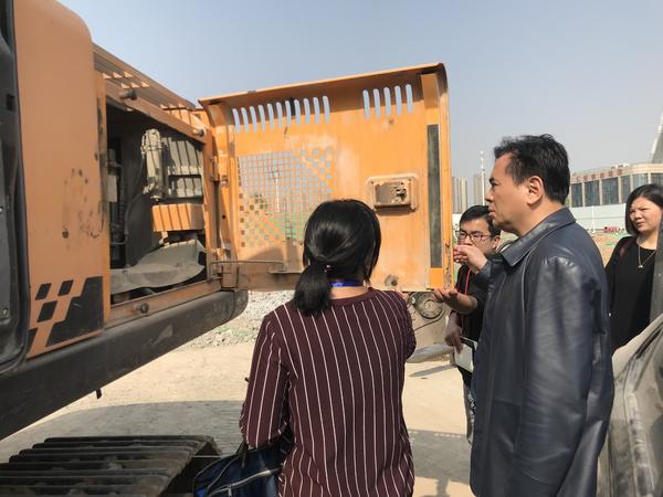 在丹尼斯項目改造工地,馮保河讓挖掘機司機現場啟動車輛,查看煙筒是否有冒黑煙現象。