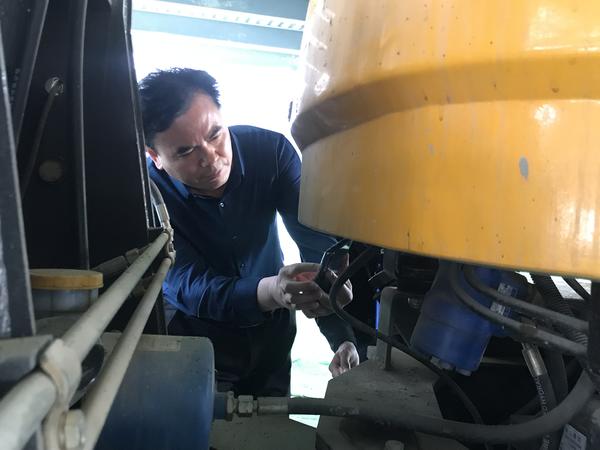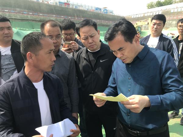 在建業中心項目工地,馮保河仔細詢問了車輛的油品使用情況,查看機械的加油臺賬。
