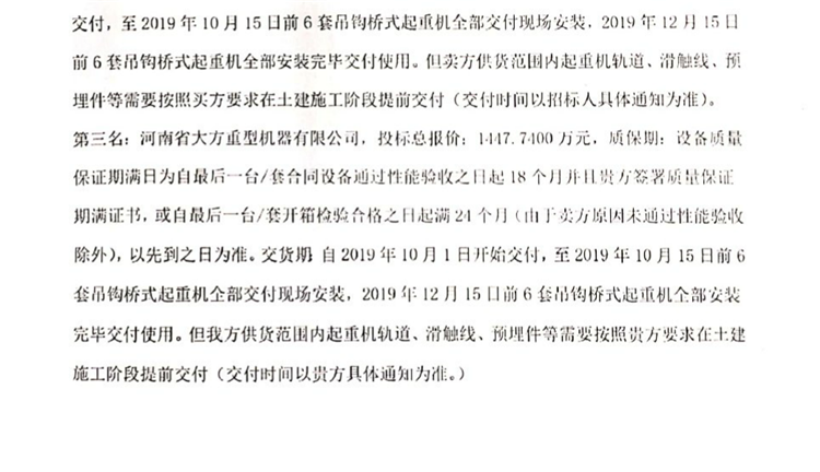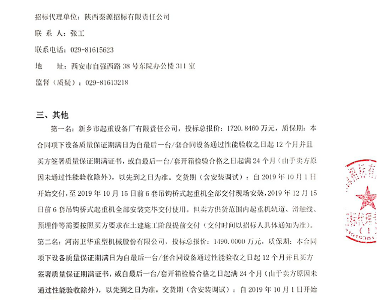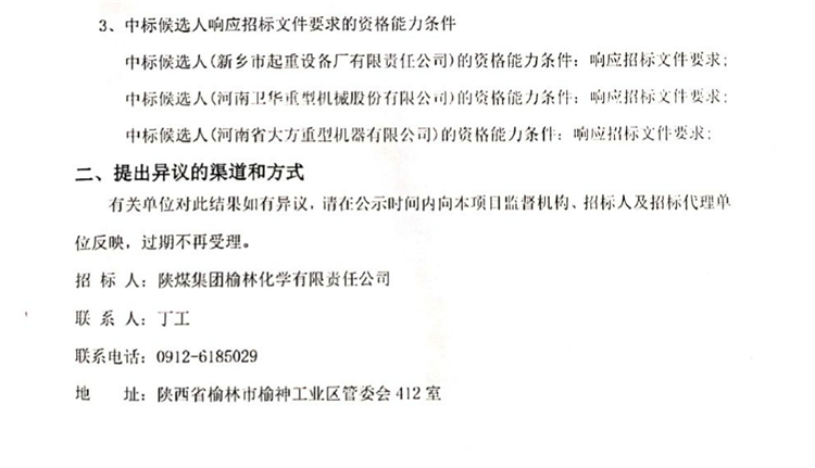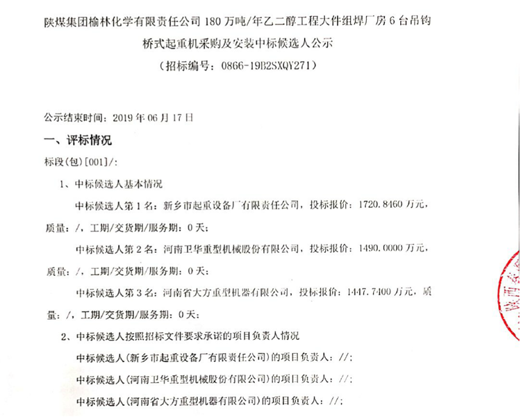 移動(dòng)版:陜煤集團(tuán)榆林化學(xué)有限責(zé)任公司180萬(wàn)噸/年乙二醇工程大件組焊廠房6臺(tái)吊鉤橋式起重機(jī)采購(gòu)及安裝中標(biāo)候選人公示