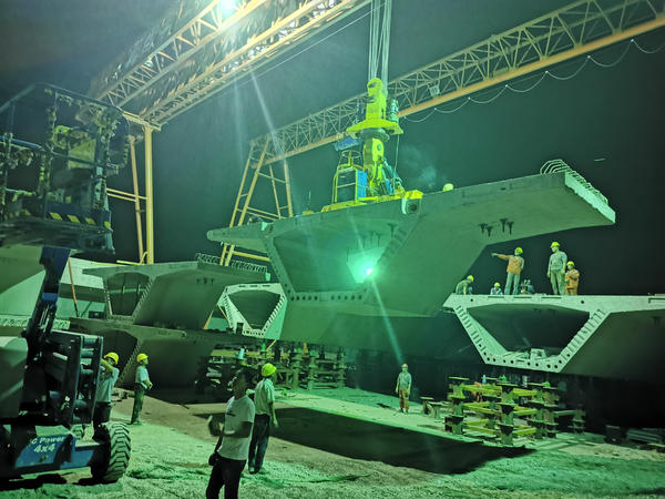 預制節段梁架設方面,目前大河路節段梁累計完成安裝4196榀,本周預計再架設1885榀。