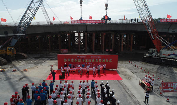 鄭州市東四環主線高架貫通儀式上,鄭州市城鄉建設局、鄭州交建投公司、中鐵二十一局中原區域指揮部負責人和鐵建中原公司領導班子及參建單位代表,共同見證了這一激動人心的時刻。