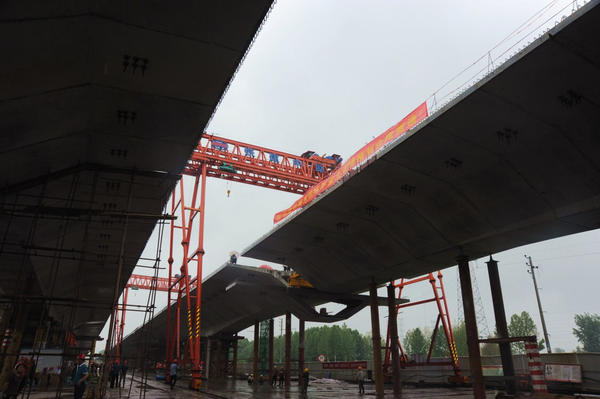 起吊、定位、拼接、鎖定……6月29日凌晨5時,經過一系列高難度動作之后,最后一榀重90噸的節段梁精準架設在鄭州東四環跨航海東路大橋11米高的跨中部位,標志著中鐵二十一局鐵建中原公司承建的鄭州市東四環快速化道路主線高架貫通,為全國第11屆少數民族傳統體育運動會的勝利召開提供了交通保障。