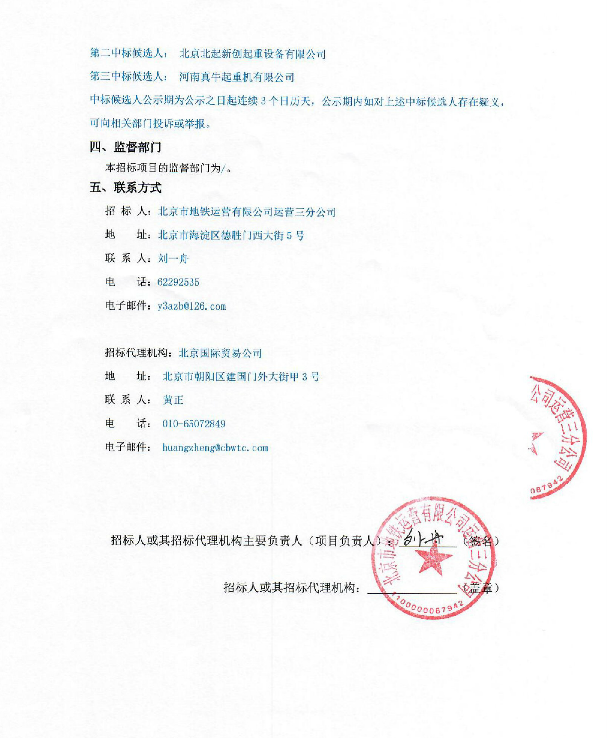 北京地鐵運(yùn)營三分公司起重機(jī)維保中標(biāo)候選人公示
