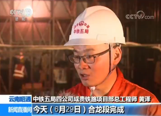 中鐵五局四公司成貴鐵路項(xiàng)目部總工程師 黃澤:現(xiàn)在我們正在做的,就是玉京山隧道巨型暗河溶洞大廳的連續(xù)梁合龍段施工,今天合龍段的完成,就標(biāo)志著我們?nèi)芏刺幚淼倪B續(xù)梁全部施工完成。