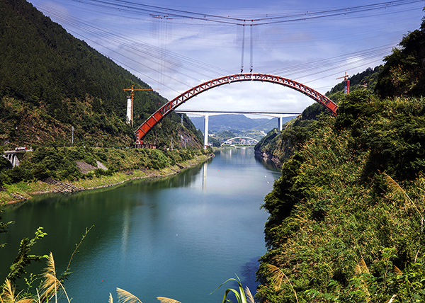 8月9日,張吉懷鐵路酉水大橋主拱完美合龍,猶如一道紅色的長虹橫跨在湘西酉水上。這標(biāo)志著中國鐵建所屬鐵四院設(shè)計(jì)的世界最大跨度鐵路不對稱拱橋施工邁過了風(fēng)險(xiǎn)最大、難度最大的階段。