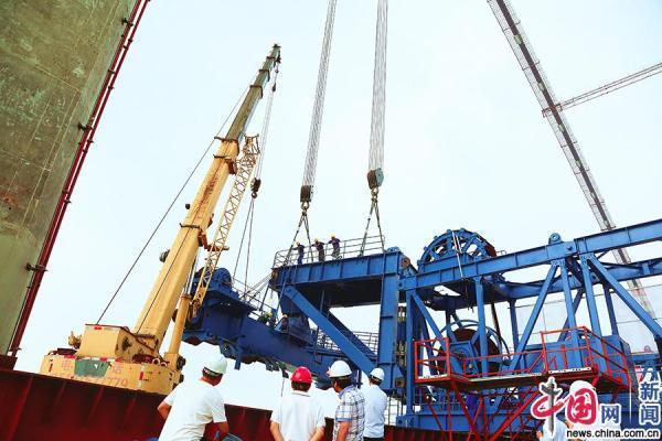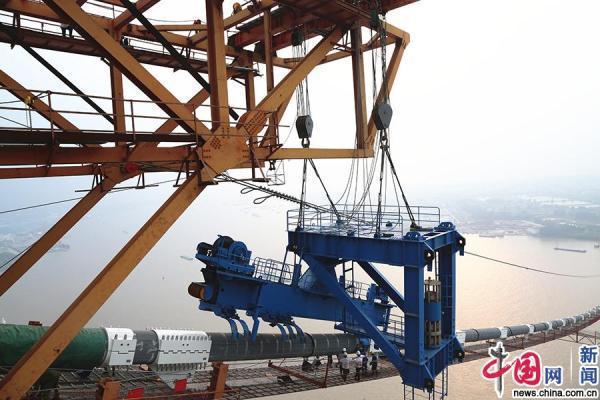 五峰山長(zhǎng)江大橋開始安裝纜載吊機(jī)啦!經(jīng)過三天分段吊裝作業(yè),9月3日下午3點(diǎn),五峰山長(zhǎng)江大橋首臺(tái)纜載起重機(jī)安裝到位,標(biāo)志著五峰山長(zhǎng)江大橋已具備中跨鋼桁梁架設(shè)條件。