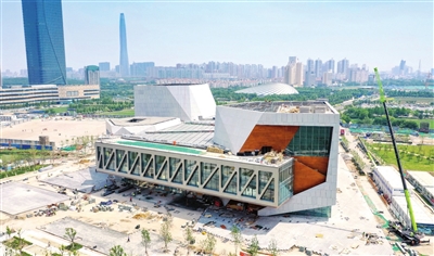 在濱海高鐵站西鄰、海河?xùn)|岸,一座極具現(xiàn)代藝術(shù)氣息的建筑非常引人矚目,這就是正在施工中的天津茱莉亞學(xué)院。作為中美人文交流高層磋商的重點(diǎn)項(xiàng)目,天津茱莉亞學(xué)院是茱莉亞學(xué)院在美國本土之外的首家分院,從立項(xiàng)到目前臨近建成,多年來,該項(xiàng)目凝聚了中美雙方眾多人士的共同努力。7月21日,記者從天津茱莉亞學(xué)院項(xiàng)目工程建設(shè)沖刺動(dòng)員大會(huì)現(xiàn)場了解到,距離項(xiàng)目預(yù)定完工日期還剩20天,各參建隊(duì)伍全力以赴,攻堅(jiān)克難,為確保竣工驗(yàn)收和學(xué)院開學(xué)發(fā)起最后沖刺。
