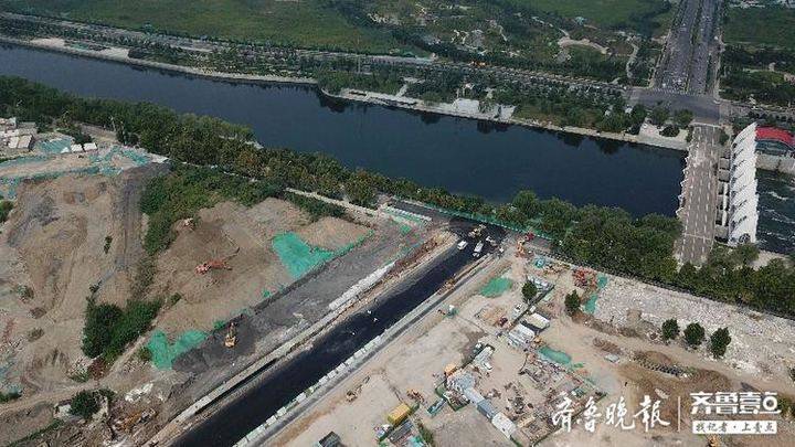 8月11日,記者在濟南奧體西路北延段看到,小清河南路與奧體西路交叉口路段已經打通,道路東側已經形成路面,瀝青也鋪設完畢,中間正在下設管廊,西側道路路基已經形成。不少挖掘機正在道路西側的土山上進行施工。