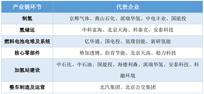 在產(chǎn)業(yè)基礎(chǔ)方面。北京已經(jīng)形成了制氫、儲運、燃料電池電堆/系統(tǒng)、核心零部件、加氫站建設(shè)、整車制造的全產(chǎn)業(yè)鏈。