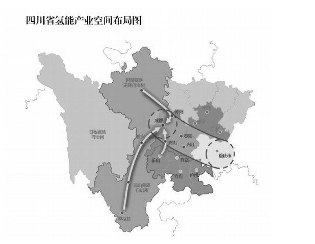成都—內江—重慶發展軸。發揮成都氫能產業發展核心作用,充分利用成都高端裝備制 造中心、創新中心、檢測中心、應用中心優勢,帶動內江、資陽、自貢、樂山等沿線城市氫能應用、燃料電池汽車制造及汽車零配件、氫能軌道交通裝備產業發展。同時,搶抓成渝地區雙城經濟 圈建設重大機遇,與重慶深化互補合作,共同打造成渝氫走廊。