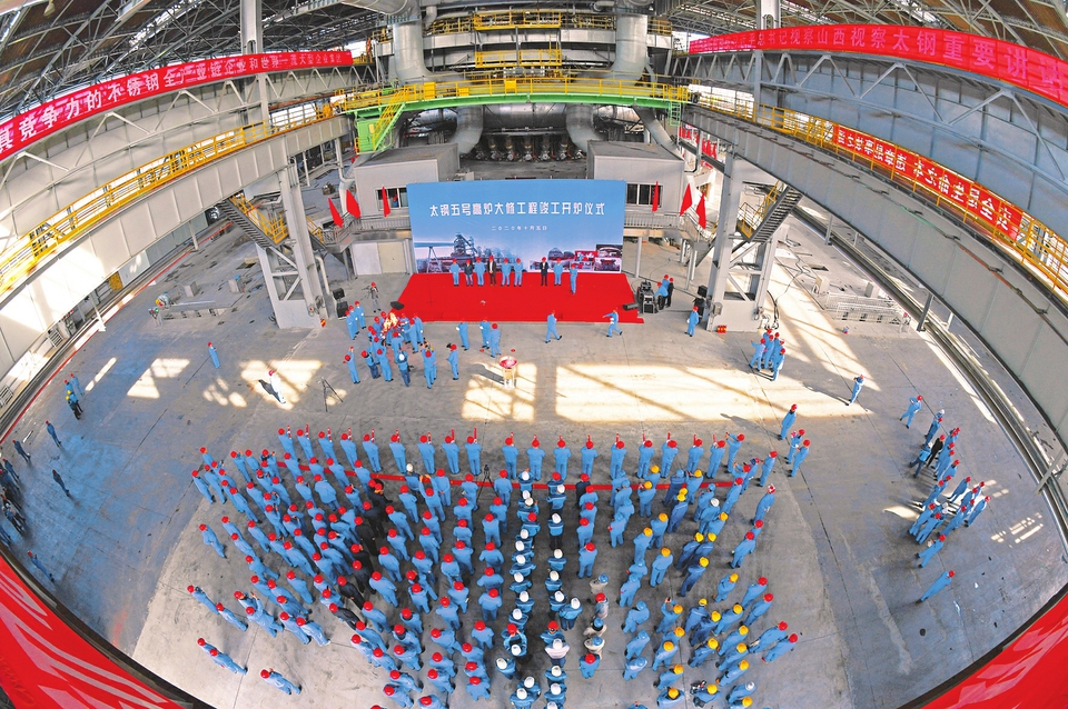 太鋼五號高爐大修工程竣工開爐儀式現場。王旭宏攝
