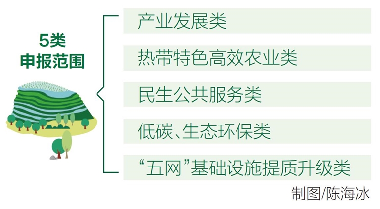 根據省發改委披露的信息,2021年省重點項目申報范圍包括5大類。其中,產業發展類,包括旅游業、現代服務業、高新技術產業等產業項目;熱帶特色高效農業類,包括農業觀光公園、特色農業種植基地、全球動植物種質資源引進中轉基地、海洋牧場、中心漁港、南繁科研育種基地、高標準農田建設等;民生公共服務類,包括學校、醫院、疾控中心、文體中心、安置區工程、社會管理信息化平臺等;低碳、生態環保類,包括垃圾焚燒發電廠、污水處理廠、新能源汽車和節能環保汽車的研發制造及應用、海洋新能源、設備制造、新型材料、環保建材等。(來源: 海南日報 記者梁振君)