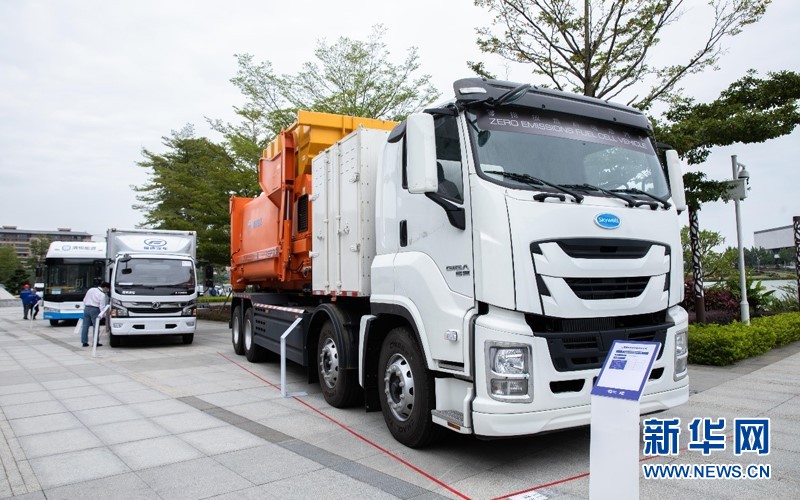 采用重塑科技燃料電池技術(shù)的31噸燃料電池垃圾清運(yùn)車(chē)。新華網(wǎng)發(fā)