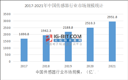 大家都了解傳感器實際上是當之無愧的朝陽行業,傳感器產業鏈以其科技含量高、經濟收益好、行業前景廣等優勢為大家關注。我國傳感器的銷售市場在這么多年一直是穩步增長的,從圖1得知,2017年我國傳感器銷售市場仍然維持增長,總體市場規模達到1690.8億元,同比增長率19.1%,上年我國傳感器總體市場規模是達到2188.8億元。將來伴隨著工業物聯網、智能制造系統、人工智能技術等發展戰略的執行,再加上智能化行業的各個方面發展趨勢,毋庸置疑這將為傳感器銷售市場及公司帶來更強的發展趨勢機會,預估2021市場規模將達到2951.8億元,增長速度達17.6%。