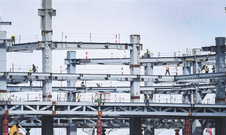 日前,在海口江東新區(qū)起步區(qū)的海南國(guó)際能源交易中心大廈項(xiàng)目,各種作業(yè)車輛和施工人員在忙碌著對(duì)項(xiàng)目鋼結(jié)構(gòu)主體進(jìn)行組裝。目前該項(xiàng)目地上鋼結(jié)構(gòu)已施工至六層。該項(xiàng)目堅(jiān)持超常規(guī)推進(jìn),24小時(shí)施工,計(jì)劃年底主體結(jié)構(gòu)封頂。海南日?qǐng)?bào)記者 袁琛 攝