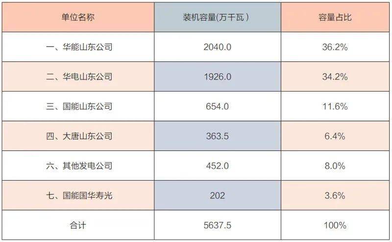 在山東統調公用燃煤機組容量(指參與現貨交易)中,華能和華電兩家公司的裝機占比超過70.4%,華能、華電、大唐、國家能源四家公司占比達到了92%。山東是典型的雙寡頭市場。