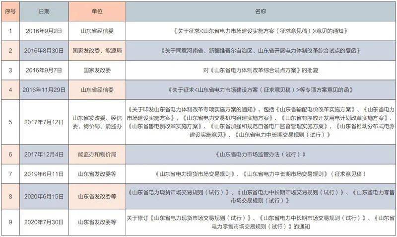 2015年新一輪電改到來,從國家部委到山東地方政府發布了一系列電改政策,主要政策如下:
