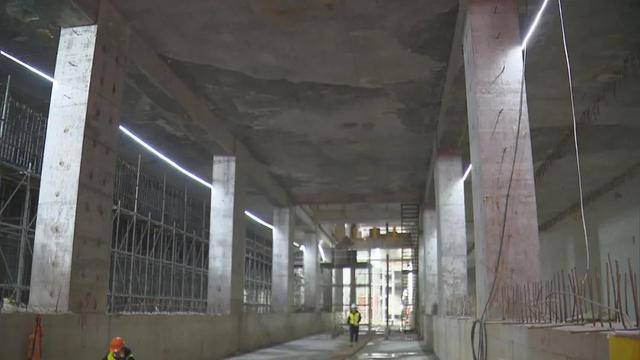 14號線工程還被賦予了“智慧力”。浦東大道站采用了大體積凍結暗挖施工工藝。另外,全線共有5個工點首次運用了封閉式工地大棚,成功解決了“聲光塵”等問題,實現綠色施工。尤其是陸家嘴站,大棚外觀針對陸家嘴整體風貌量身打造,達到與周邊環境完美融合,使整個工地幾乎“隱身”于陸家嘴摩天樓群中。