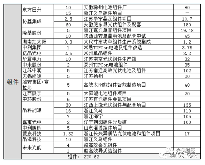 2020年光伏組件企業產能投資計劃