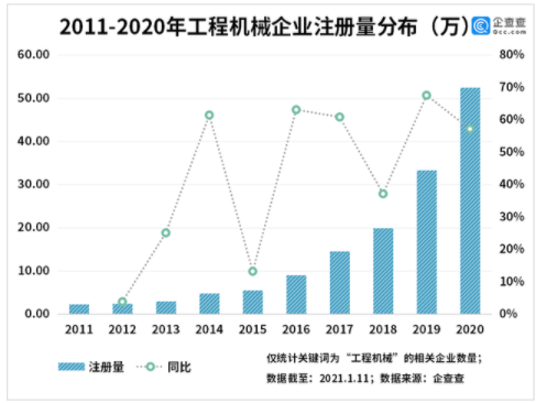 原標(biāo)題:2020年我國工程機(jī)械相關(guān)企業(yè)注冊量同比增長57%