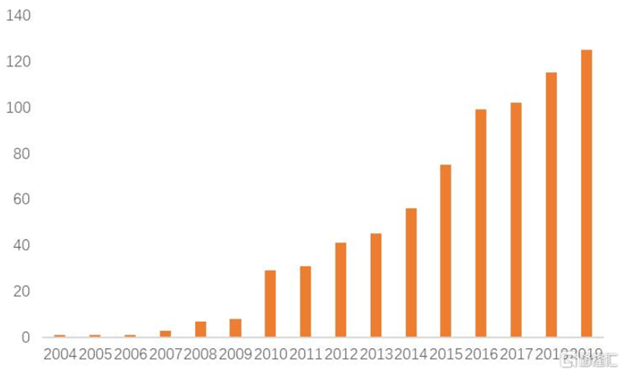 2019年全球光伏發電量占比僅2.7%,還處于較低水平,未來空間較大。從下圖可以看出,10多年來,全球光伏裝機量一直是上升的,隨著光伏發電平價時代的到來,年度的新增裝機量有望進一步提高。