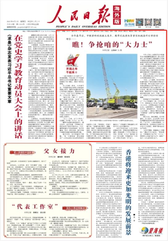 4月1日《人民日報》(海外版)頭版聚焦中聯重科