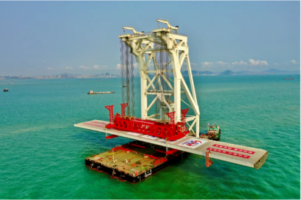 “天一號(hào)”是國(guó)內(nèi)首創(chuàng)單體船型結(jié)構(gòu)、全電力推進(jìn)的海上架梁施工專用起重船,最大起吊重量為3600噸,無(wú)需輔助船舶,既可獨(dú)立完成取梁、運(yùn)梁和架梁工作。相比普通的浮吊架設(shè),運(yùn)用該船可有效減少工序交接時(shí)間,提高架設(shè)效率和安全。