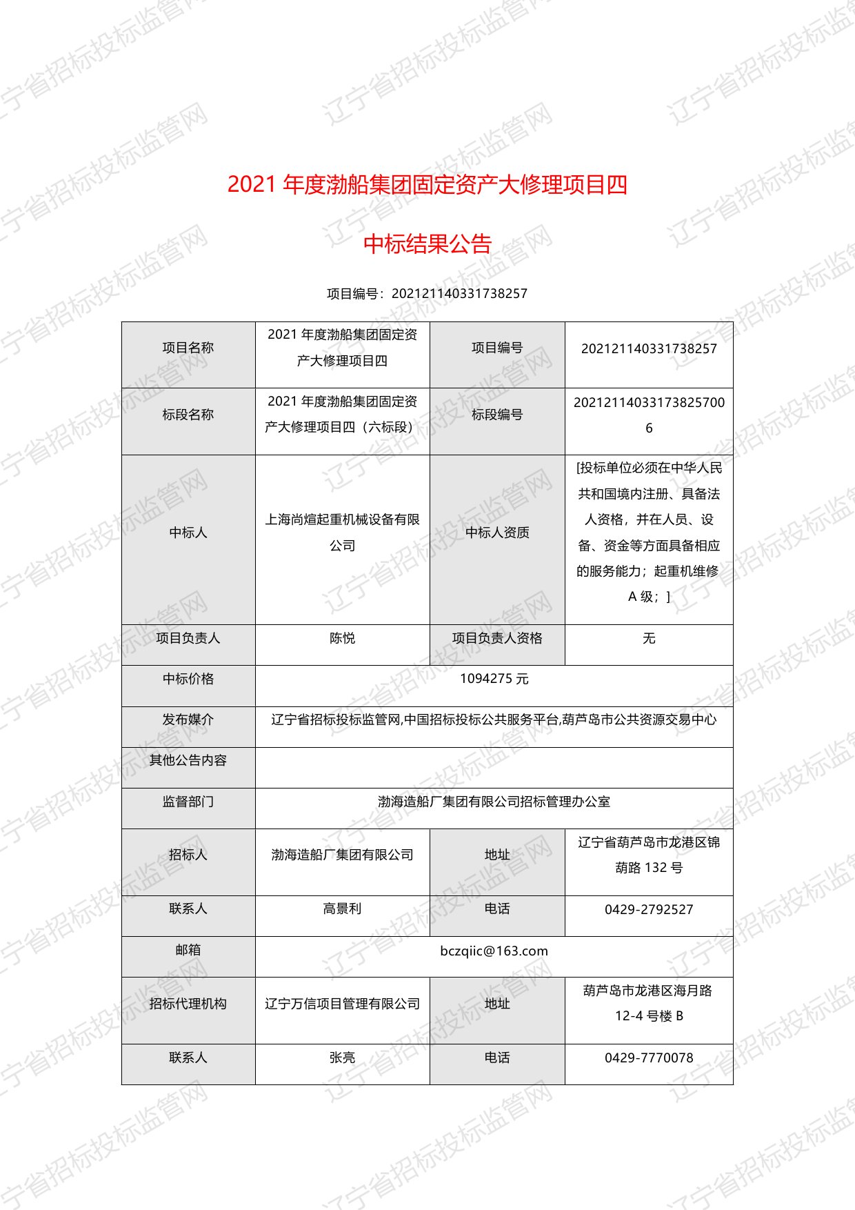 移動(dòng)版:遼寧:2021年度渤船集團(tuán)固定資產(chǎn)大修理項(xiàng)目四中標(biāo)結(jié)果公告