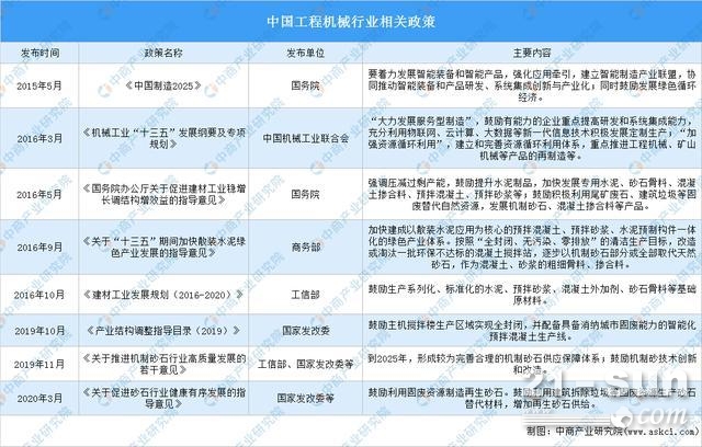 工程機(jī)械行業(yè)是我國國民經(jīng)濟(jì)建設(shè)的重要支柱產(chǎn)業(yè),是裝備制造業(yè)的重要組成部分。我國頒布了一系列有利于工程機(jī)械行業(yè)發(fā)展的產(chǎn)業(yè)政策,為行業(yè)發(fā)展提供了有力支持。例如,國務(wù)院發(fā)布的《中國制造2025》指出,著力發(fā)展智能裝備和智能產(chǎn)品,鼓勵(lì)發(fā)展綠色循環(huán)經(jīng)濟(jì)等。